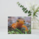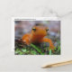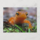 Cette carte postale présente le Red Eft, stade juvénile terrestre du Newt oriental (ou Newt à pointes rouges). Ce curieux bonhomme orange aux taches rouges vient d'émerger de l'étang pour passer deux ou trois ans sur terre avant de retourner à l'eau en tant que salamandre cultivée. À l'intérieur, il y a deux plus petits points rouges.