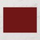 Une carte postale "Blood Red" couleur foncée et solide (avec la couleur seulement sur le devant). Le rouge sang est un rouge très foncé, une couleur semblable au rouge brun foncé. Cliquez sur "Personnaliser" pour changer de couleur ou pour ajouter du texte ou une conception. Code hexadécimal du produit : #660000