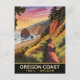 Carte postale de la côte de l'Oregon. Formations rocheuses près de l'Oregon Coast Trail, Oregon. Affiche de voyage illustrée.