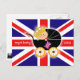 Cette belle carte postale comporte un bébé dans un chariot avec le drapeau britannique à l'arrière-plan. Est au fond l'horizon de Londres.