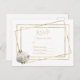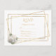 Une carte RSVP blanche et or avec des Roses Glam blanc et or. Correspond au faire-part de mariage doré et blanc du même design