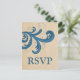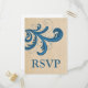 Carte de réponse Mariage Swirls douce et élégante, avec un joli arrière - plan en papier kraft et un joli design tourbillon florissant en bleu foncé. Cette carte postale moderne et rustique RSVP est facile à customiser avec vos détails mariages. Cliquez sur "Customiser" pour trouver d'autres options de personnalisation.