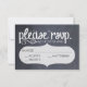 Le papier à lettres que vous envoyez donne le ton de l'événement que vous organisez. C'est cool et décontracté ou c'est un chic pantalon McFancy ? Vous ne pouvez pas vous tromper avec ces cartes postales RSVP à tableau noir d'inspiration fantastiquement vintage. Le texte de détails est entièrement personnalisable et est sûr d'impressionner vos invités.
