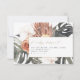 Cette carte de mariage RSVP présente des fleurs en terre cuite aquarelle avec des feuilles de palmiers tropicaux et une ambiance bohème. Utilisez ce modèle pour modifier la plupart des libellés, des polices, des couleurs de police et de la couleur de l'arrière - plan afin de correspondre au style de votre événement.