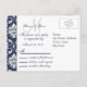Conception personnalisée de la carte postale Mariage damassé de la marine RSVP par Elke Clarke©. Carte graphique sous licence. Carte postale RSVP Mariage damassé personnalisable pour 5 x 7 invitations.