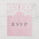 Simple et sophistiquée Elegant Lace Mariage Response Carte Postale avec un motif de dentelle blanche sur un arrière - plan de papier vintage rose clair. Cette carte postale RSVP classique et élégante est parfaite pour un mariage rustique. Facile à customiser avec vos détails mariages. Cliquez sur "Customiser" pour trouver d'autres options de personnalisation.