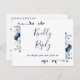 Une élégante carte RSVP marine florale couleur aquarelle avec typographie chic. L'inverse vous donne vos détails et une demande amusante de chant invité. Conçu par Thisisnotme©