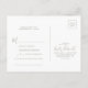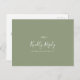 Cette carte postale RSVP minimaliste de sauge verte demande de chant est parfaite pour un mariage élégant. Le design se compose d'une simple silhouette de feuilles verdoyantes dans une couleur verte poussiéreuse avec un style minimaliste de boho de montagne. Créez votre liste d'invités mariages et votre liste de chansons de piste de danse tout à la fois ! Cette carte postale de réponse mariage demande si les invités pourront assister à votre mariage, et aussi quelle chanson les amènera à danser.