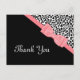 Chic rose et noir merci cartes postales avec un empreinte de léopard moderne noir et blanc et un ruban rose clair ceinturé attaché dans un arc élégant. Image imprimée plate, pas l'arc réel.