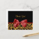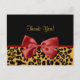 Dites merci avec cette carte postale en noir et or tendance merci avec un motif empreinte de léopard et un élégant ruban rouge attaché dans un arc. Vide sur le dos. Image imprimée plate, pas le ruban réel.