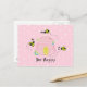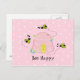 Carte Postale ruche rose - Abeille heureuse