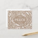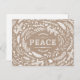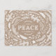La carte postale moderne de vacances mignonne comporte une frontière ou des branches rustiques fantaisistes et des feuilles entourant le mot Paix sur un arrière - plan en papier imitation kraft. Cliquez sur Customiser pour ajouter votre propre texte personnalisé et vos photos au verso de la carte ou laissez vide pour ajouter un message manuscrit pour la famille et les amis.