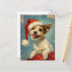 "Capturez l'esprit festif grâce à notre charmante couverture de carte de Noël avec l'adorable Russell Terrier portant un chapeau de Père Noël. Ce design chaleureux apportera de la joie et des sourires à vos proches, ce qui en fait un choix parfait pour répandre la joie des fêtes."