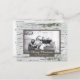 Partagez vos voeux de Noël avec une carte postale personnalisée unique. Ce design de style rustique présente un arrière - plan en bois de bouleau gris ainsi qu'un cadre couleur taupe pour votre image et un espace pour le sentiment qui peut être personnalisé et dit "Joyeux Noël" avec votre nom de famille ci-dessous. L'arrière de la carte postale est orné de bouleau sur les bords, d'une adresse de retour, d'un message d'accueil, d'une illustration de cônes et d'aiguilles de ton, ainsi que de votre signature. Remplacez la photo montrée par la vôtre pour un design d'une nature que votre famille et vos amis aimeront! Photographie © Storytree Studios, Stanford, CA.