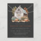 Rustic Fall Country Grange String Lights Faire-part de mariage - Notre invitation rustique comprend une grange rustique aquarelée entourée de citrouilles, feuillage de chute et tournesols sur les portes de la grange. Des lampes à cordes scintillantes sont suspendues au-dessus. L'invitation fait partie d'une collection.
