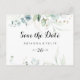 Cette rustique floral or horizontal enregistrer la carte postale date est parfait pour un simple mariage. Cette conception artistique présente des feuilles d'or dessinées à la main et des feuilles d'aquarelle vert d'eucalyptus, une beauté naturelle inspirante.