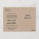 Il s'agit de la moderne minimaliste rustique Kraft design thème, en fonte noire, invitation de mariage Rescheduled (repoussé / report) carte postale (Une torsion dans les plans). C'est la façon parfaite et élégante de faire le faire-part reprogrammé à vos amis et votre famille.