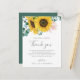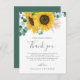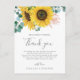 This rustic sunflower thank you wedding reception card is perfect for a country wedding. The bohemian floral design feyellow sunflowers, blush pink flowers et hunter green eucalyptus greenery in watercolor with an elegant modern boho feel. Place these cards at the table setting for each of your guests at your wedding reception. Personalize the card with your names and a special thank you message.