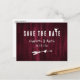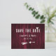 Personnalisez facilement ce mariage bordeaux à l'exception de la carte postale de date pour votre mariage champêtre bordeaux, bohème ou grange.