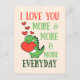 Cette carte de la Saint-Valentin présente un dinosaure mignon tenant un cœur avec une typographie manuscrite vibrante "Je t'aime de plus en plus chaque jour".
