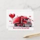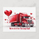 Carte postale Saint Valentin pour camionneurs. "We're In It For The Long Haul" texte avec un camion couvert de coeur.