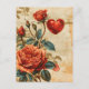 La carte postale ancienne de la Saint-Valentin présente une scène intemporelle avec des roses illustrées de manière complexe entourant un cœur délicatement façonné. Les roses arborent des teintes riches, capturant l'essence de la romance, tandis que le cœur sert de point focal, orné de détails élégants. La conception globale dégage un charme classique, offrant un aperçu nostalgique des sentiments amoureux d'époques révolues.