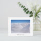 Carte postale avec séchage des tas de sel avec réflexion dans l'eau en attendant la récolte sur le Salar les salines Uyuni dans le sud de la Bolivie avec une frontière blanche et le texte : 'Bolivie'.