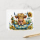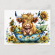 Une carte de vœux adorable conçue pour la campagne avec un veau de race Highland et des tournesols
