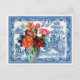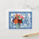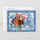 Des fleurs colorées dans un vase sont posées en face d'un plan de saule bleu traditionnel. Les motifs bleus du vase font écho aux couleurs et au style de la toile de fond d'inspiration asiatique. Les fleurs lumineuses ont un aspect contemporain même si elles ont été imprimées sur une carte de commerce victorienne antique. Cette belle image peut décorer les invitations, les annonces et l'intérieur de votre maison.