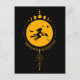 Samhain dessine avec une pleine lune orange. Sorcière sur un balai avec un chat et jack-o'lanterne et chauves-souris. Sous une toile d'araignée orange et le texte" Samhain Blessings."