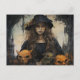Une carte postale avec une sorcière à l'allure vintage...compagnons étranges.