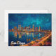 Capture the sunny, vibrant beauty of San Diego, California with this striking, artistic postcard. This unique painted style highlights the Waterfront and downtown skyline, featuring palm trees and boats against a dramatic, colorful sky over the bay. Perfect for California locals, beach lovers, visitors to the Gaslamp Quarter, or anyone who loves the quintessential West Coast lifestyle. Use this postcard for travel greetings, as a piece of unique artwork, or for corporate mailing from America's Finest City.