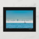 Carte postale montrant un yacht naviguant sur la baie de San Francisco avec la ligne d'horizon de la ville émergeant de la brume derrière.