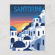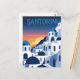 Cette carte postale capture la beauté sereine de Santorin, en Grèce. L'illustration met en évidence les églises à dôme bleu et les villages blanchis à la chaux accrochés à la falaise, avec le coucher du soleil sur la mer Egée en arrière - plan. C'est un design pittoresque et élégant, parfait pour partager la beauté de cette célèbre île grecque.