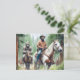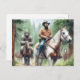 Un sentier de l'aquarelle scène fantaisie avec Sasquatch chevauchant l'un des chevaux sur un sentier de groupe.