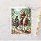 A Sasquatch conduit le sentier de randonnée sur son cheval de pinto imaginaire art généré art AI