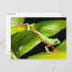 Carte d'animal montrant une grenouille d'arbre sautant d'une feuille à l'autre.