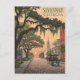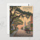 Savannah, rue Georgia avec maisons historiques, chênes couverts de mousse, et lumière chaude du soir.