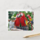 Carte postale avec l'image de trois des nombreuses macaws écarlate qui accueillent les visiteurs au parc Xcaret à Playa del Carmen, Quintanaroo, Mexique.