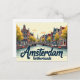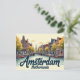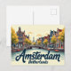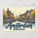 Cette carte postale rétro reflète l'esprit classique d'Amsterdam avec ses canaux pittoresques, ses maisons étroites et ses vélos de charme sous une lumière dorée tamisée. Un hommage nostalgique à la capitale vibrante de Pays-Bas, idéal pour les amateurs vintages, les voyageurs et les collectionneurs de charme européen.