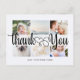Script avec cœur Merci 6 photos Universel Carte postale. 6 photos de famille personnalisées collage Universel Cartes de vœux avec un collage de photos stylé avec 6 images personnalisées, votre message de remerciement en police de caractères cursive élégante, votre nom, date, année, message au verso dans une police sans serif moderne et simple.