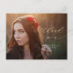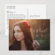 Cette jolie carte postale de remise de diplômes vous offre une photo complète et une calligraphie moderne. La superposition de texte en or et blanc comprend l'expression "merci" écrite dans l'élégant script en or, avec le nom du diplômé et l'année de graduation en blanc ci-dessous. Le design de typographie or et blanc recouvre une photo horizontale complète du nouveau grad. À l'arrière, vous pouvez écrire un message personnalisé aux destinataires ou supprimer le texte modèle pour créer une zone vide pour une note manuscrite.