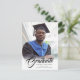 Cartes postales élégantes et modernes pour faire-part de graduation, avec un script de calligraphie élégant et du texte moderne avec votre photo de diplômé. Le verso de la carte offre des espaces de texte personnalisés pour des informations sur l'obtention du diplôme ou peut être reformulé pour faire de la carte une invitation de grand parti. Écriture en noir sur gris argenté clair sur le dos ou customisez facilement l'arrière - plan à une couleur de votre choix (assurez-vous que la couleur est assez claire pour écrire). Pour voir d'autres articles comme celui-ci, visitez mon magasin ici à "www.Zazzle.com/LakeViewCardCo". Merci