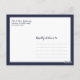 Carte postale Mariage bleu marine moderne avec titre en caractères blancs modernes avec détails en caractères blancs sans serif modernes sur arrière - plan bleu marine.