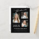 3 cartes postales modernes de remise de diplômes photo. Ce design personnalisé combine écriture manuscrite, style calligraphie avec texte moderne en noir et gris clair sur un arrière - plan noir élégant. Le verso de la conception offre des champs de texte personnalisables pour vos informations sur les faire-part et les diplômés. Pour voir d'autres articles comme celui-ci, visitez mon magasin ici à "www.Zazzle.com/LakeViewCardCo". Merci