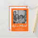 Script moderne Orange Moving Faire-part Photo Carte Postale.