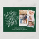Script blanc moderne sur vert "Bon Tidings of Comfort and Joy" 4 Photo Collage Minimaliste Carte postale. Envoyez des voeux de Noël à vos proches avec cette carte postale de Noël minimaliste et moderne. Tous les textes sont pré-arrangés pour que vous personnalisiez facilement et rapidement avec vos propres détails. Joyeuses fêtes !