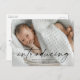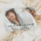 Script Présentation de Faire-part de naissance photo bébé et Carte de remerciements. Le dos comprend une deuxième photo et un message de remerciement que vous pouvez personnaliser ou supprimer si vous préférez écrire à la main votre remerciement. Cliquez sur le bouton personnaliser/modifier pour customiser cette conception.