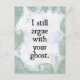 Je me dispute encore avec votre fantôme - abstrait de texte poignant avec des tourbillons de couleur vert écume de mer sur fond blanc avec des accents lavande et jaune.