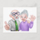 Caricature grand-parents âgés couple femme agitant et mari faire des pouces